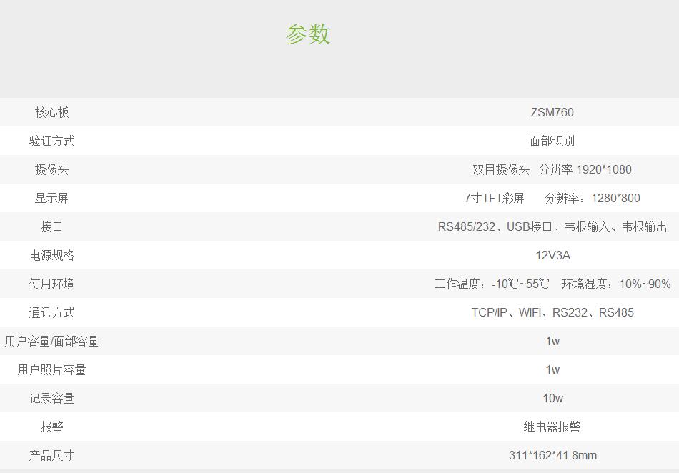 TDB03擁有近紅外加可見光動態人臉識別功能,加以使用中控智慧自主研發的人臉識別算法,能夠快速抓取人臉信息進行驗證比對,不到1s即可完成識別驗證,識別通過率高達99%,進一步優化了識別率、識別速度及誤判率等指標。同時,TDB03支持人臉識別防偽功能,通過雙目防偽攝像頭進行活體檢測,高效辨別及配對人臉采集圖像,保證人臉識別的安全可靠性。 TDB03帶有超聲波測距模塊,可支持1.5m范圍內人臉比對驗證,其擴展性強,同時機器硬件接口及功能豐富(RS232、語音、USB、韋根輸出等),用戶照片標準容量達到1萬張,滿足用戶的不同應用場景需求。還能根據用戶的需求對場景設計針對性的解決方案,并提供定制化的多樣性門禁控制功能。 TDB03&百傲瑞達 TDB03可對接百傲瑞達,接入門禁PUSH架構,支持專業門禁功能。通過軟件管理人員數據,將人員照片實時下發到設備并授權,可實時監控界面查看設備運行狀態及人員通行驗證記錄。其他功能特點及優勢 ●1:N人臉比對方式 ●雙目攝像頭,支持防偽檢測 ●7寸TFT彩屏 ●可控制閘機左開和右開功能 ●具有容量大、驗證快、高防偽特性門禁系統發展歷程從簡單中控刷卡密碼門禁,中控指紋門禁,中控靜態人臉識別門禁,中控動態人臉門禁系統,科技革新生物識別無限可能。目前最新生物識別就是可見光人臉動態識別門禁系統,最遠距離可以達到1.5米。中控門禁科技有限公司提供更多可見光高科技產品信息請關注我