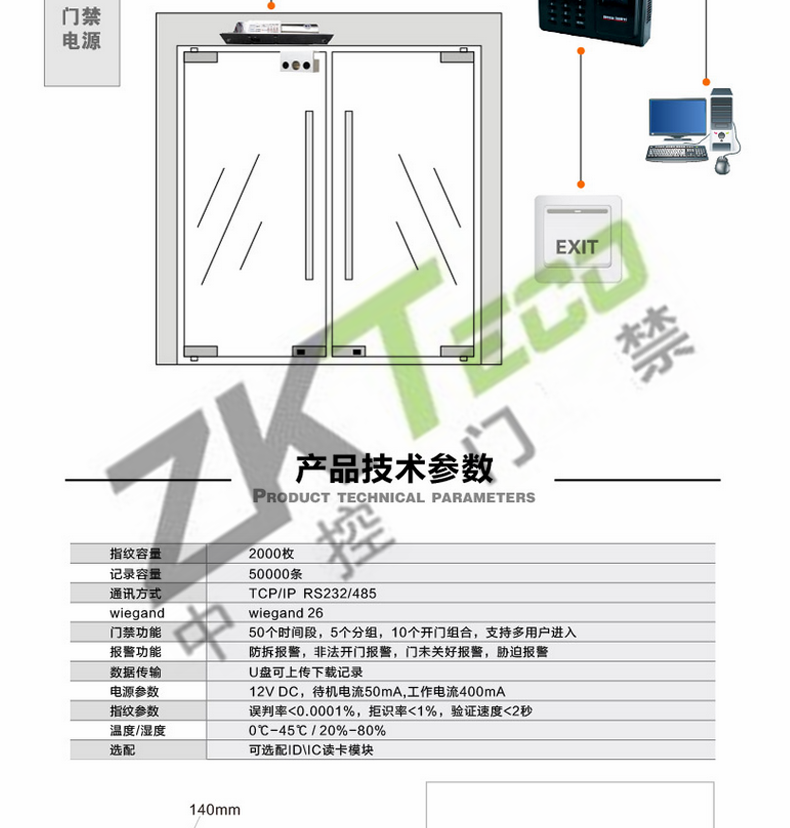 · 平臺 : Intel32位處理器,2007版ZKFinger V8.0版指紋算法,ZEM500主板