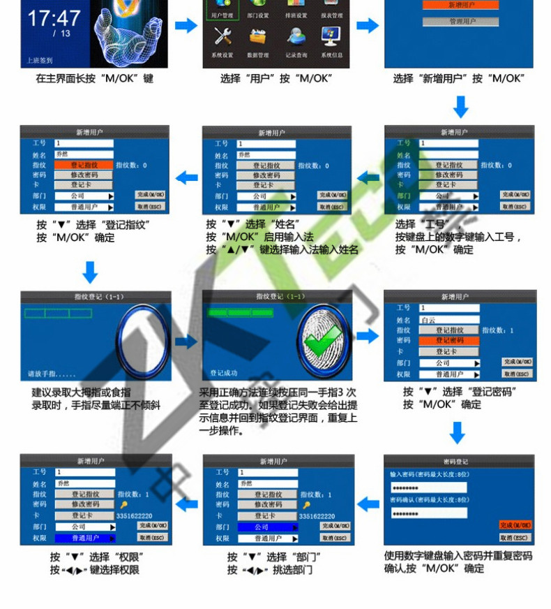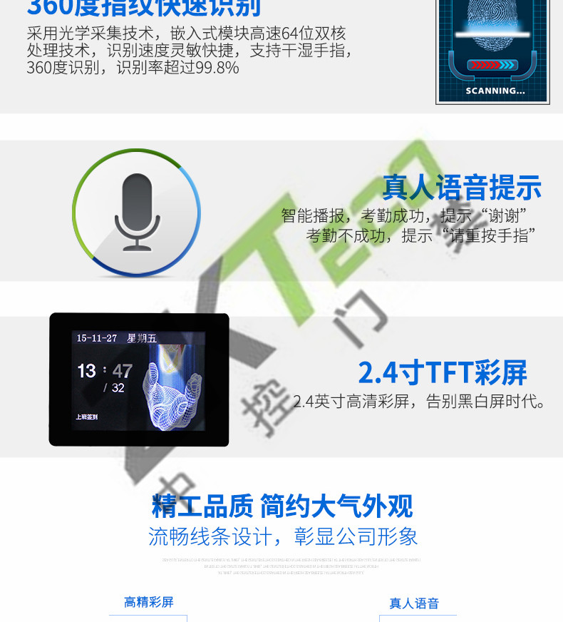 JC-608S指紋考勤機(jī) 高清彩屏打卡機(jī)