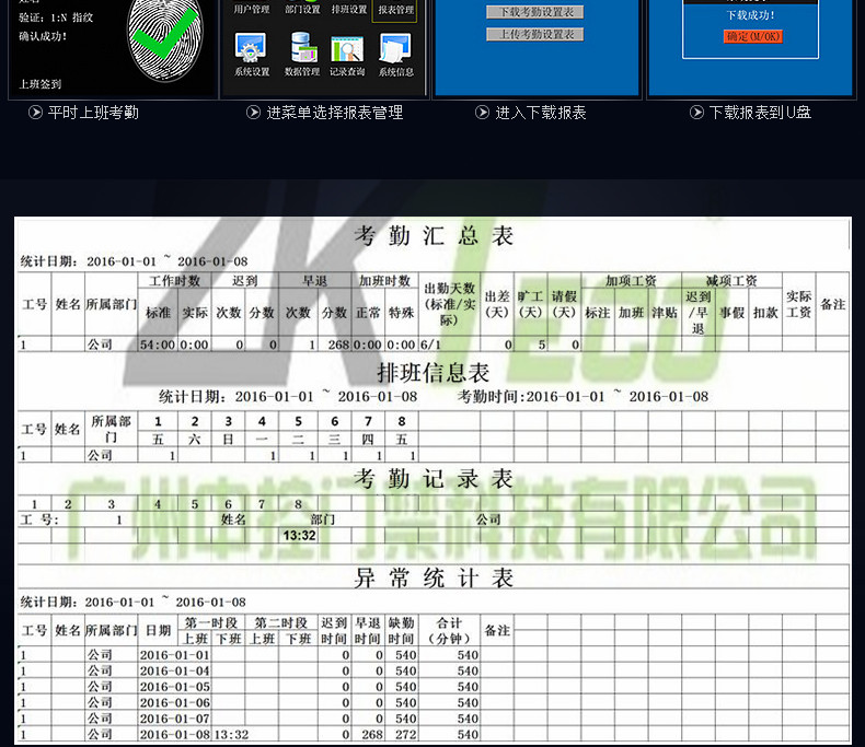 U盤下載:用戶可通過U盤下載考勤數(shù)據(jù)及上傳自定義背景圖片;