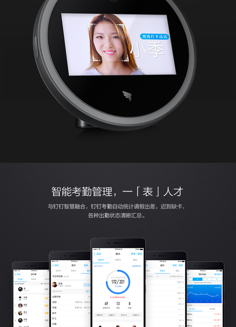 釘釘M2動態打卡機 人臉識別考勤機