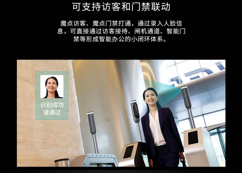 魔點MS4智能人臉閘機柱,支持各類門禁場景應用,例如可為企業提供智能化門禁通道管理方案,也可助力零售商家打造智慧門店。